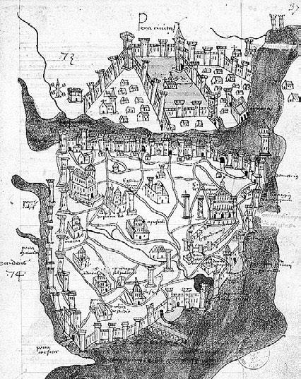 Кристофоро Буондельмонти. Карта Константинополя. 1422 г. Национальная библиотека Франции, Париж