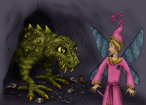 – ОЙ. Это ты, что ли, фей? А я думал… Кхм… Э-э-э… И вовсе я никого… не трогал! Тебе… в темноте померещилось! И вообще – откуда ты тут взялся? А Изабелла где?… Изабелла? Изабелла! Стой у своего дерева, не двигайся! Сейчас я тебя спасу!