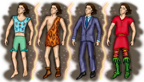 Пять минут сверхчеловеческих усилий чародея и с десяток экспериментов – один неудачнее другого – в конце концов принесли Люсьену красную рубаху с короткими рукавами, такие же штаны в желтую полоску и пару зеленых крокодиловых сапог.