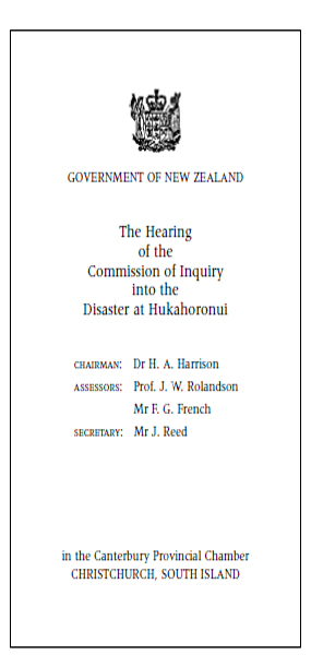 ‘In the winter of the year, on the eighteenth of July, a disaster occurred in the township of Hukahoronui on the South Island of New Zealand in which fifty-four people lost their lives. The New Zealand Government has appointed a Commission of Inquiry, of which I am Chairman. My name is Arthur Harrison and I am Rector of Canterbury University.’
