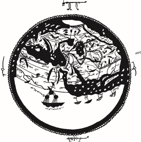 Рис. 8. Арабская зональная карта мира, скопированная с карты Идриси (1154 г.), с изогнутыми параллелями. Оксфорд, библиотека им. Бодлея