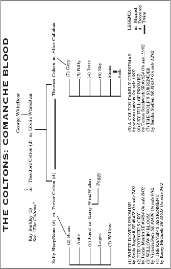 Jared stared down at Kerry WindWalker’s desperate face and wondered how the added years had somehow made her even more beautiful than he remembered. Shiny crow-black hair, high molded cheekbones, honey-brown skin, and eyes the color of sweet chocolate suggested she was half Comanche like himself. While her dusky pink lips reminded him she’d been the one girl he’d always wanted to kiss, but had never been given the chance.
