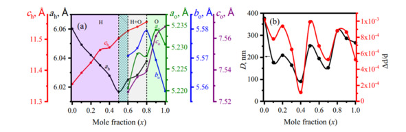 In our case, this condition is met. The linear parameters of unit cells in the two phases increasing with x is a characteristic of the two phases coexistence region (x=0.6—0.8). In the orthorhombic phase, the parameters bo and ao that decrease as x→1.0 and increase as x increases. In this phase, the changes in D and Δd/d have a general trend.