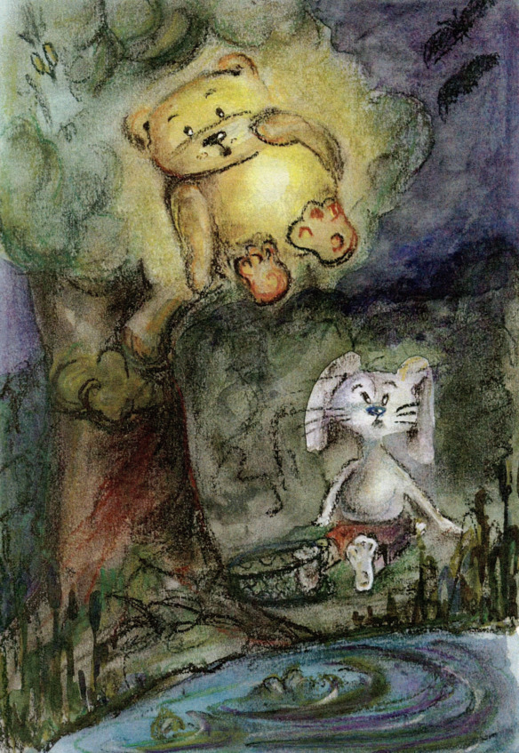 Мишка подобрался к гнилушке и схватил её обеими лапами. Свет закачался, Верлиока удивился и обернулся. И тут произошло нечто неожиданное для всех.