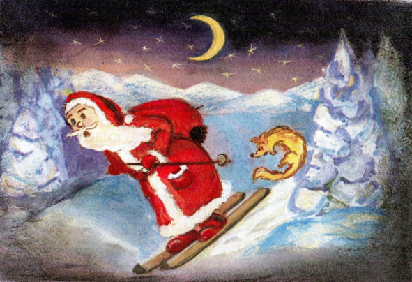 Рыжий Лисёнок выпал из мешка Деда Мороза на повороте, когда тот, съезжая с горы, заложил особенно крутой вираж. Лисёнок откатился в сторону и угодил в сугроб, а Дед Мороз, не заметив пропажи, понёсся дальше. До Нового Года оставалось несколько часов, а Деду надо было пересечь Онежское озеро да по тайге пробежать немаленькое расстояние до города Коряжма. Конечно, субзвуковые лыжи марки «Копуша» позволяли ему преодолевать пространство почти со скоростью звука, но Дед любил, как в старину, пробежаться по морозцу, чтобы щёки раскраснелись, а изо рта пошёл густой белый пар. Он не любил реактивное такси и поэтому, чтобы не рисковать, выехал заранее – хотел прибыть на место назначения заранее.