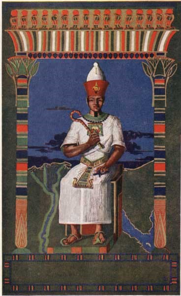 The time is coming on now for the King to go in state to the great temple at Karnak to offer sacrifice, and as we go up to the palace to see him come forth in all his glory, let me tell you a little about him and the kind of life he leads. Pharaoh, of course, is not his real name; it is not even his official title; it is just a word which is used to describe a person who is so great that people scarcely venture to call him by his proper name. Just as the Turks nowadays speak of the "Sublime Porte," when they mean the Sultan and his Government, so the Egyptians speak of "Per-o," or Pharaoh, as we call it, which really signifies "Great House," when they mean the King.