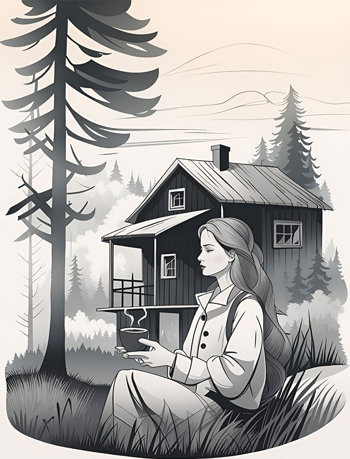 Было душно от жгучего света,А взгляды его – как лучи.Я только вздрогнула: этотМожет меня приручить.Наклонился – он что-то скажет…От лица отхлынула кровь.Пусть камнем надгробным ляжетНа жизни моей любовь.А. Ахматова. 1913 г.Я накинула халат, провела рукой по тяжелым мокрым волосам, взяла в руку чашку кофе и сэндвич, и вышла из домика на крыльцо, украшенное срубами стволов. Меня встретила спокойная утренняя тишина и свежий воздух, буквально сочившийся влагой. Перед взором раскинулся просторный бледно-зеленый луг, вдалеке границу горизонта очерчивал ровный ряд темно-изумрудных, почти черных сосен. Я спустилась вниз, и мокрые ноги холодной росой лизнула бесцветная трава. Первый глоток кофе – и я растворилась в утреннем молчании северной карельской природы, изредка прорезаемой выкриками какой-то птицы. Эта чарующая картина была скрыта от остальных, здесь не проезжали люди. Я сбежала сюда на выходные, подальше от большого города, чтобы ненадолго забыться и побыть в уединении.