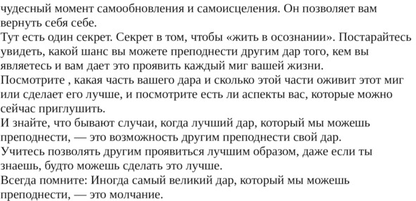Никогда не считайте, что вы уже все поняли и больше вам понимать нечего. Не ограничивайте свой процесс познания словами: «Я всё поныл» или «Я и так все знаю». Этими словами вы опускаете перед собой шлагбаум, делающий невозможным дальнейшее движение. Будьте открыты новому знанию, будьте готовы заново переосмыслить и по-новому пережить то, что казалось вам вполне известным и понятным.