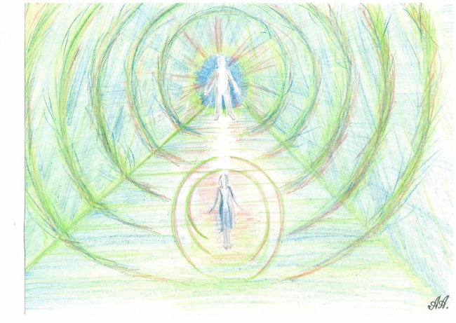 В рисунке ЕЙ захотелось передать стремление ДВОИХ быть вместе, готовность прислушиваться друг к другу, желание понять другого, и принять таким, какой ОН есть. Все не просто! Это долгая дорога! Но если эти желания появляются и, главное, они появляются у ДВОИХ, значит, это может быть возможным? Если ДВОЕ готовы в этом вихре ежедневных событий ВИДЕТЬ ДРУГ ДРУГА, то это может СДЕЛАТЬ ИХ ОДНИМ ЦЕЛОМ, не смотря на то, что ОНИ ОЧЕНЬ РАЗНЫЕ!
