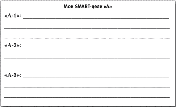 (После этого перепишите три самые важные Ваши цели – А-1, А-2, А-3 – еще раз, сформулировав их как цели SMART. Ниже для этого также выделено специальное место. – К. Б.)