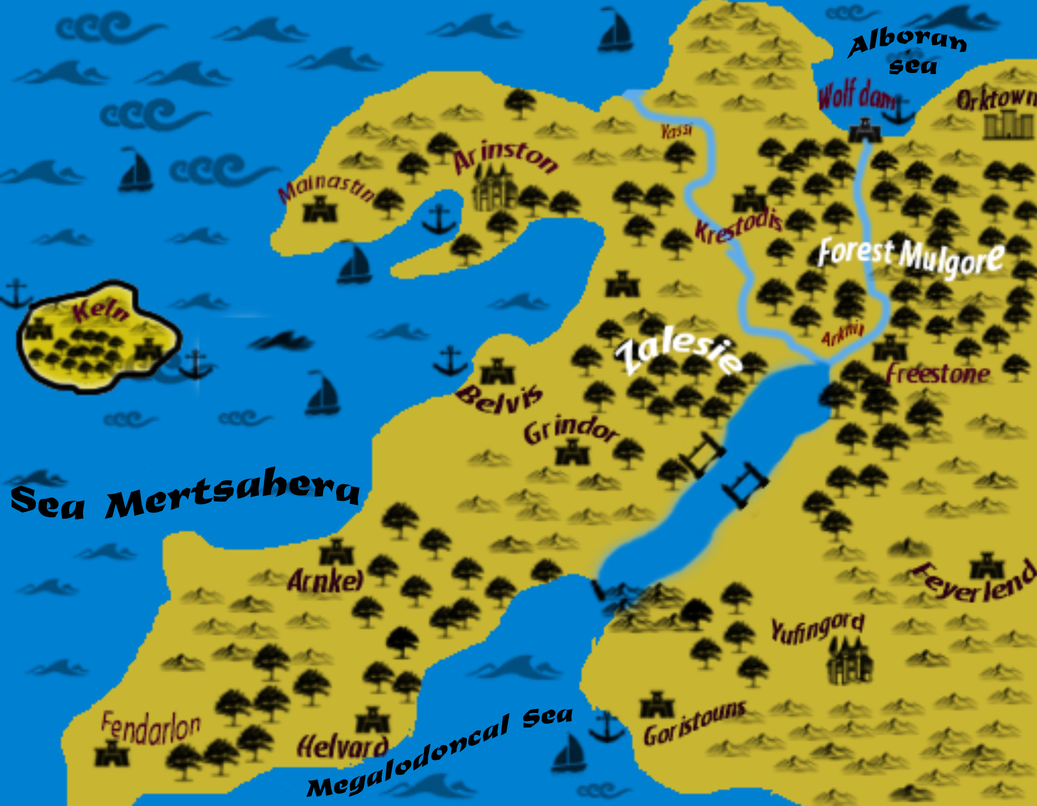 Прошло время, но король очень долго не мог прийти в себя, а вместе с ним и все его королевство. Они узнали, что существует другая раса, более сильная и страшная, которая могла бы уничтожить их. Но время шло, все постепенно забылось об их существовании, и о том что произошло. Суета быта изменилась, когда его жена родила ему сына, которого назвали Арином. Маленький ребенок принес счастье и спокойствие всему королевству. А спустя год королева родила второго сына Юфина. Король Грин построил из камней две великие крепости и назвал их в честь своих детей. Одна из крепостей находилась на далеком севере под названием АРИНСТОН, с запада омывающей морем Мерцахэра, с востока и севера окруженная могучим лесом Мулгор, а на южной стороне крепости расположились мелкие деревни и города. Вторая крепость находилась на юге под названием ЮФИНГОРД. Король Грин как и все родители мечтал, что его сыновья, два брата, будут жить в мире и в гармонии помогая друг другу, а дальнейшем и их дети унаследуют эти крепости и будут управлять всеми владениями, передавая из поколения в поколение. Все шло так как и предполагали. Мальчики росли в любви и ласке, и казалось, что они вырастут в братской любви друг к другу. Но несмотря на это у каждого из них преобладало чувство соперничества и жадности.