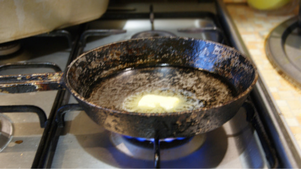 1. На разогретую сковороду положить кусочек масла и растопить его до кипения.