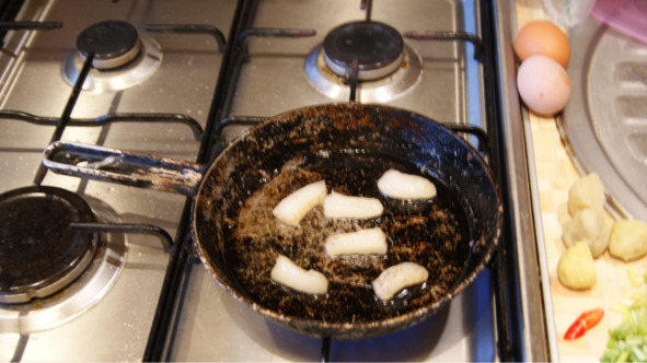 3. Добавить кусочек острого перца и обжарить в течение тридцати секунд.