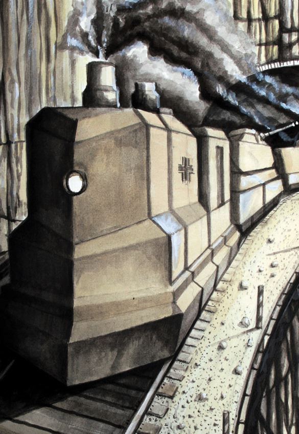 Наступило утро, поезд замедлил ход и остановился. В вагоне всё стихло, мы пристально прислушивались, что происходит снаружи. Немецкие солдаты прошли мимо нашего вагона, что-то громко обсуждая. Вдруг наш вагон и, видимо, весь состав неожиданно пошатнулся, раздался громкий резкий звук и жуткий скрежет металла. Я посмотрел в ту сторону, откуда доносился звук, и увидел внутренним зрением, что последние платформы загружаются ещё какими-то громоздкими ящиками. Они были металлическими и наглухо закрытыми.