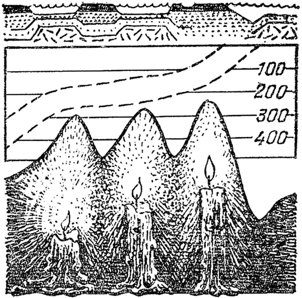 Это чрезвычайно важный факт. В наше время многие авторитетные специалисты в науках о Земле его недооценивают. Пытаясь понять, какие силы сминают в складки и разрывают горные породы, колеблют земную поверхность и движут материки, геофизики ссылаются на энергию земных глубин. На этом основана популярная ныне глобальная тектоника литосферных плит. Впрочем, о ней у нас будет особый разговор.
