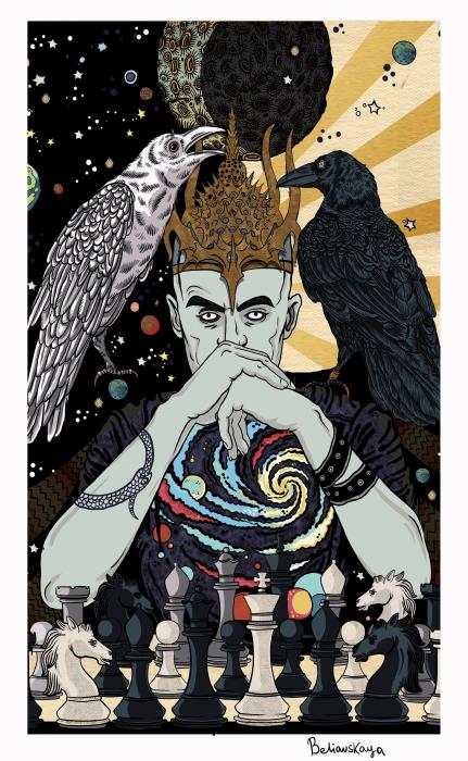 Видно, сама Вселенная этого стража и сотворила, бессмертным его сделала. Прозвали этого грозного владыку Кощей, от слова «тощий» – ведь редко ел он да пил – шахматной партией Вселенной был увлечен: следил, чтобы борьба между добром и злом, живым и мертвым честная была. Нельзя было на всякие мелочи ему отвлекаться – на пиры не ходил, хотя гостем он слыл всегда желанным у знатных магов, волшебников, королей и царей, да на прогулки не выезжал – ведь ускользнет если что от его внимания, того и гляди всеобщий Вселенский хаос настанет и в мирах порядок уже сложно будет вернуть.