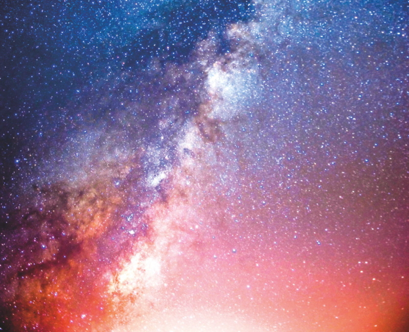 1 Wenn Sie in einer klaren Nacht in den Himmel blicken, wie weit können Sie dann sehen? Und was sehen Sie? Haben Sie jemals die Milchstraße entdeckt? Wenn Sie weit genug von den Lichtern einer Stadt entfernt sind, können Sie in dunklen Nächten ohne Mondschein ein breites helles Band sehen, das sich über den Himmel erstreckt. Dabei blicken Sie in Richtung des Zentrums unserer Galaxie; die Sterne scheinen so dicht beieinander zu stehen, dass sie in ihrer Gesamtheit einen milchig weißen Lichtstreifen bilden.