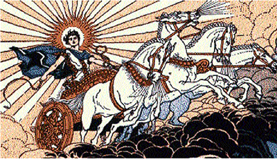 Там бог-солнце садится в крылатую лодку, которая переправляет его вокруг северной части земли обратно в то место, где он восходит на востоке. Мильтон ссылается на это в своем «Комусе»: