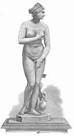 Венера (Афродита), богиня любви и красоты, была дочерью Юпитера и Дионы. Однако по другим источникам, Венера была дочерью самого предвечного бога Урана и вышла из морской пены. Зефир отнес ее среди волн к острову Кипр, где Венеру приняли и обрядили Оры и потом привели ее в собрание богов. Все были очарованы красотой Венеры, и каждый звал ее себе в жены. Но Юпитер отдал Венеру Вулкану в благодарность за услугу, которую тот ему оказал, выковав стрелы молний. Так самая прекрасная из богинь стала женой самого некрасивого из богов. Венеру облачили в пояс, который имел силу вызывать любовь. Птицами Венеры были лебеди и голуби, а из цветов ей посвящались роза и мирт.
