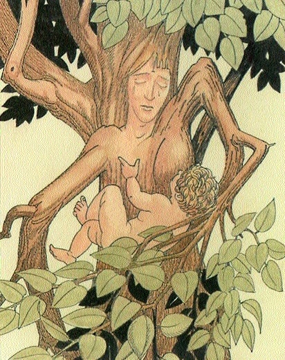 – Я не виновата. Я не заслужила такой судьбы. Я никого не обижала. Если я говорю неправду, пусть моя листва погибнет от засухи, в ствол сломается и сгорит. Возьмите ребенка и отдайте его няне. Пусть его часто приносят и нянчат под моими ветвями, пусть он играет в моей тени; и когда он станет достаточно взрослым для разговора, скажите, чтобы он назвал меня матерью и сказал с грустью: «Моя мать сокрыта под этой корой». Накажите ему быть осторожным на берегах реки, пусть он опасается собирать цветы, помня, что каждый куст, который он видит, может быть замаскированной богиней. Прощайте, дорогой супруг, и сестра, и отец. Если в вас остается немного любви ко мне, не давайте топору ранить меня и скоту кусать и рвать мои ветви. Так как я не могу наклониться к вам, поднимитесь и поцелуйте меня; и пока мои губы продолжают чувствовать, поднимите вверх ребенка, чтобы я могла поцеловать его. Больше я не могу говорить, потому что кора уже поднимается по моей шее и скоро закроет меня. Вам не нужно закрывать мне глаза – кора закроет их без вашей помощи».