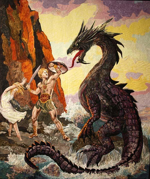 Высадившись на скалу, которая возвышалась над волнами, он, держась за выступ, нанес чудовищу последний смертельный удар, когда оно проплывало рядом. Люди, которые собрались на берегу, закричали так, что холмы ответили эхом. Родители в радости обняли своего будущего зятя, называя его избавителем и спасителем их дома, а дева, причина и одновременно награда за битву, спустилась со скалы.