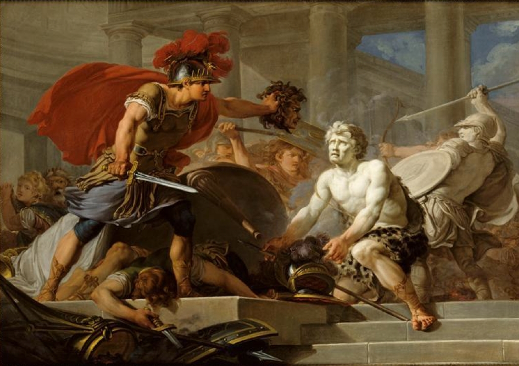 Персей бросил бы свой меч в ответ, но трусливый противник побежал и спрятался за алтарь. Однако его действие было сигналом для наступления его команды на гостей Кефея. Они сами защищались, и получилась общая борьба; старый царь удалился оттуда после бесплодных увещеваний, призывая богов в свидетели, что он не виновен в нарушении законов гостеприимства.