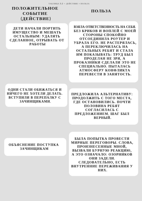 Переходим к Таблице 3.2 – Действие = польза.