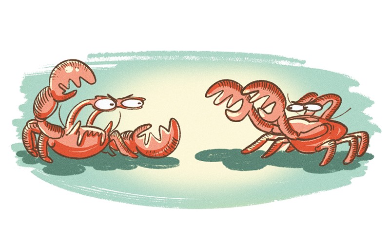 Но к концу третьего года совсем замучили его молодые и старые крабики, постоянно, к месту и ни к месту вызывающие его на дуэль.