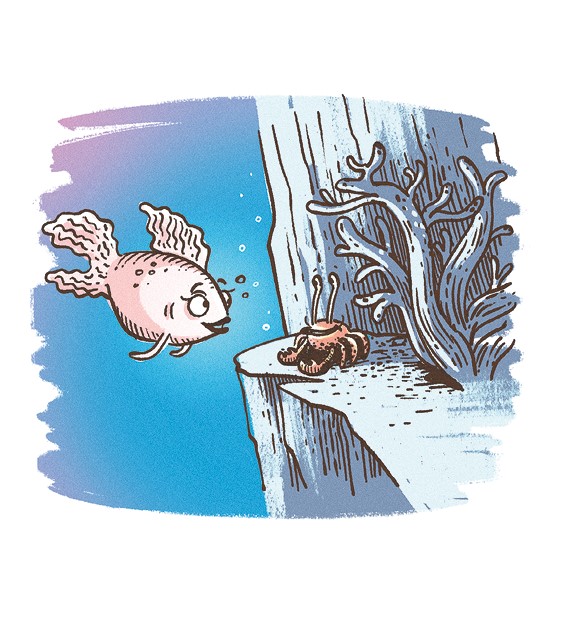 И вдруг увидела прямо перед собой Крабика. Крабик был очень красивый, только слегка грязный. И удивилась Рыба.