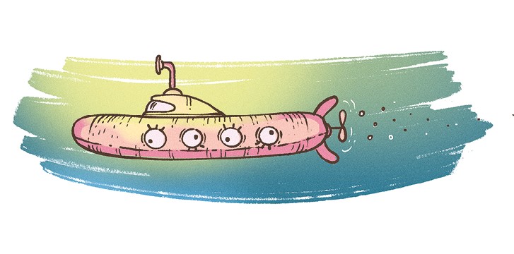 Подлодки, как и все изобретения людей, работают совершенно неправильно. Вместо того, чтобы опускаться, они лишь подныривают и плывут вперёд. Как будто одно место отличается от другого. Как вообще можно попасть из одного места в другое, если все места едины и потому не могут различаться? Но «позаботиться» в нашем случае означало «развлекать» – для Рыбки, и «срочно» – для Крабика.