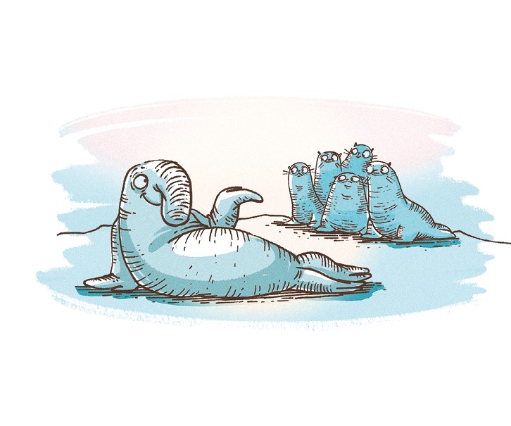 На теплой песчаной отмели, где нет хищников и ненужных течений, собрались Морские Котики, а точнее Морские Котята. Собрались они потому, что на берег вынесло Морского Слоника. И тот, пока у него еще остался кислород в крови, сейчас начнет рассказывать о Морской Жизни.