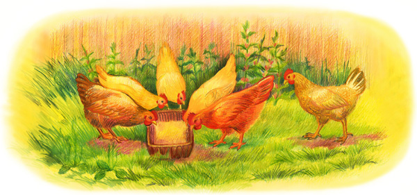 – Ах ты, негодная! – принялась отчитывать соседскую курицу бабушка. Мало того, что приблудила в мой двор, – ещё и петуха мне избила! Сейчас я тебе покажу, где раки зимуют! А вы, куры, молодцы! Не дали обидеть своего петушка. Хорошо потрепали проходимку! Так ей и надо! – похвалила своих наседок хозяйка.