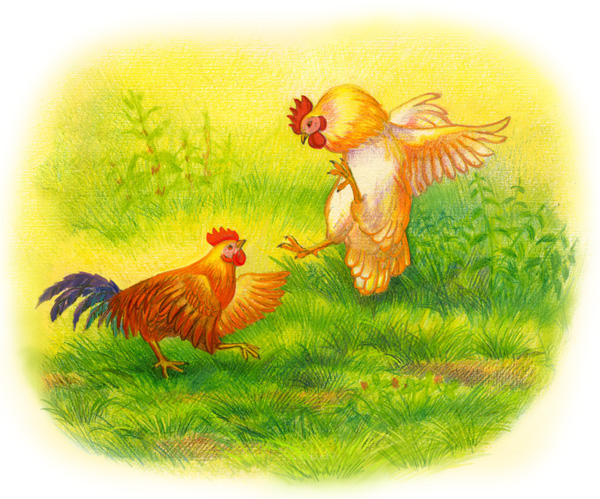 – Будешь знать, как чужих петушков обольщать! – в ярости кричали куры и ещё больнее щипали и клевали её острыми клювами.