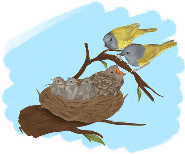 Про кукушек и их безбашенные родительские повадки ты уже давно знаешь, а вот я тебе про остальных птичек расскажу. Кукушкам пофиг, а остальные птички гнездуются. Кукушки встретились и разлетелись, а остальные птички попарно по лесу шарят – кто палочку принесет, кто червячка в клювике, все в родное гнездо. А там уже такой весь кукушонок проклюнулся раньше всех. А и рады родители, вон он какой молодец – здоровый, ладный, первенец. И давай его кормить. А он жрет чего попало, только подноси и добавки просит. Даже мохнатых гусениц, от которых все нормальные птички, и сами родители в том числе, клюв воротят, этот хавает за милую душу. И не пищит. Ну, пищит, конечно, но не на тему несварения, а в том смысле, что еще давай! Любо-дорого смотреть. Другие птенцы как-то бледненько рядом выглядят, мохнатых гусениц не хотят, и вообще плохо кушают. Родители их укоряют: смотрите, дескать, на нашего молодца, вот он какой вдвое уже вымахал, вас по краям гнезда оттеснил. А они бестолковые совсем – нет-нет да и вывалится один из гнезда, а там и другой за ним. И ведь неоперившиеся еще, желторотые, куда только лезут? Кушали бы лучше, да родителей слушали. Тут уж птички совсем своим кукушонком гордятся – на кукушонкином фоне не то что свои, а из соседних гнезд птенцы бледнеют. Наш-то и на крыло первым встанет и первым из гнезда улетит! Глядят усталые родители с тоскою вдаль, аж сердца у них заминаются от сладостной неги. Такого пернатого вырастили, не кукушонок – орел!