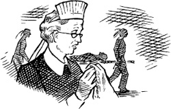 “Didn’t say it was! My fault indeed!” She glared at him, took her specs off, polished them on a spotless handkerchief from her apron pocket, and put them back on her formidable nose.