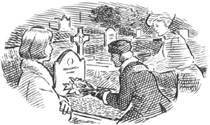 “Anyway, they got there, and bought some flowers at the gates, and the old lady filled a plastic bottle with water from a tap. Mum carried the things and held her gran’s arm, and they walked to the grave. And then Mum gave the flowers to her gran, who knelt down by the grave. She was – you know – taking out last week’s flowers and arranging the new ones in the vase with the fresh water, and suddenly Mum saw someone standing beside her.”