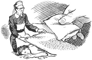 He looked. Jessica Charlotte’s wet clothes had all been pulled off and were lying in a soggy heap. There seemed to be quite a lot of them. Matron was just finishing rolling her patient in the sock-blanket like a cocoon. Only her head stuck out.
