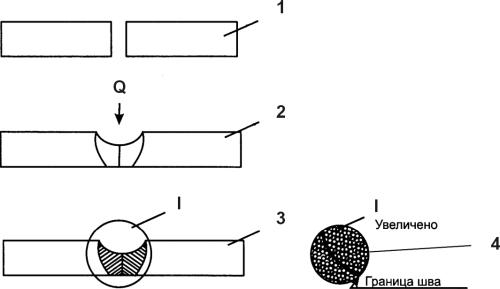 Рис. 1. Схема стадий образования соединения сваркой плавлением:
