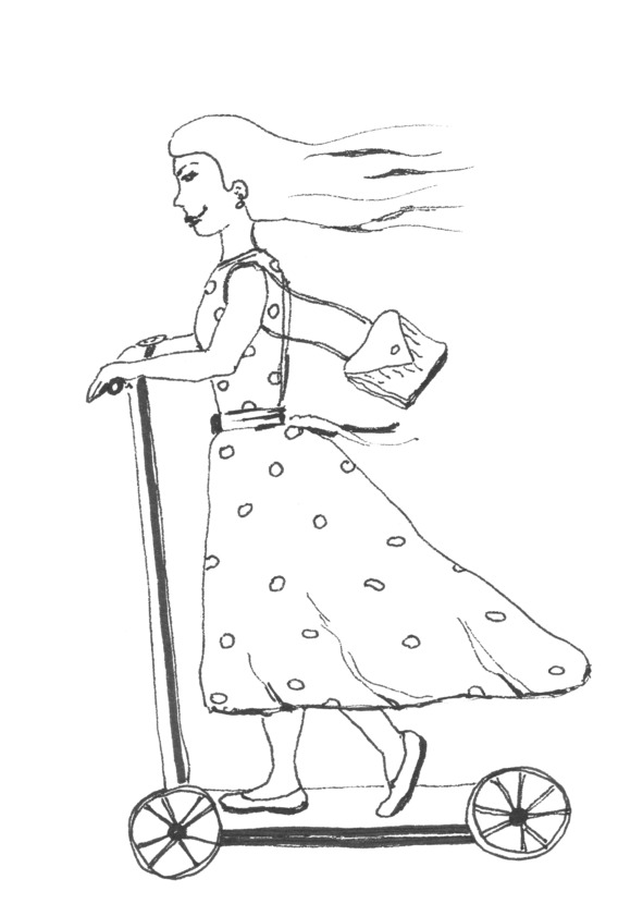 Маша поправила свою кошачью шапку и улетела на розовом самокате.