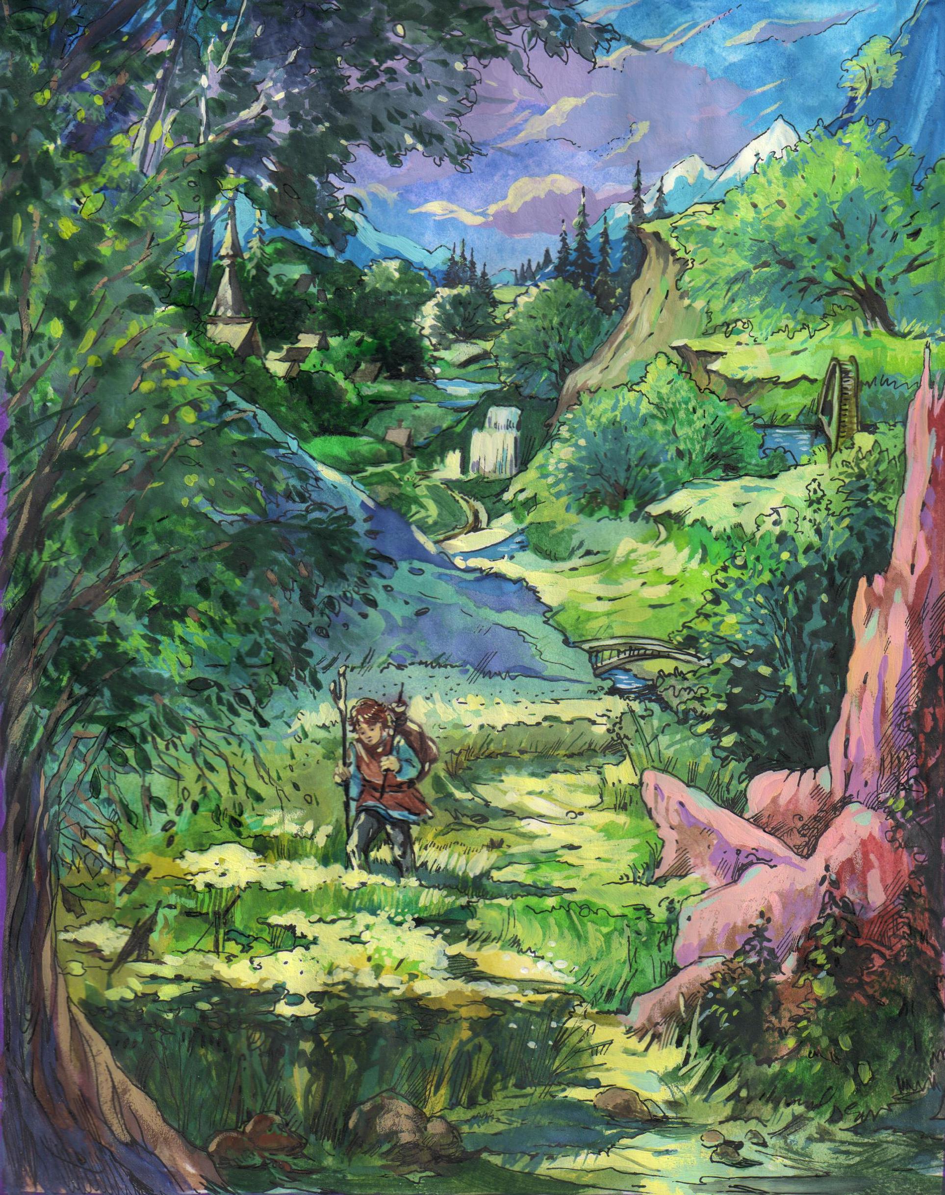 Когда первые лучи солнца осветили долину, щуплая фигурка была уже на полпути к лесу. Не ожидая погони, мальчик шёл не спеша, с удовольствием. Ему нравилось мерить сочную траву широкими шагами. Где-то там, в деревеньке, которую было уже не видно, наверное, проснулась его матушка и, обнаружив отсутствие не только сына, но и последней краюхи хлеба, всё поняла. Ничего, у соседей попросит. За новость о побеге непутёвого сына её, может, и кашей угостят. Брать последнее съестное из дома Дру не хотелось, но ему ведь предстояла дальняя дорога – без тёплой одежды, денег и транспорта. Пусть хлеб, спрятанный за пазухой, поможет хоть недолго не думать о тяготах предстоящего пути.