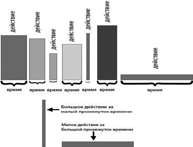 При относительном времени его значение постоянно меняется, потому как оно зависит от внутреннего времени индивидов, из которого состоит общество, а также от самого времени и его колебания, принадлежащего обществу, ведь оно тоже имеет свое собственное время, созданное путем соединения времени индивидов и их действий. Для того чтобы понять, как это работает, представьте себе анимацию, в которой показано движение оси времени, где деления то сжимаются, то разжимаются, но тебе, дорогой читатель вполне это можно представить, воспользовавшись своим воображением ☺.