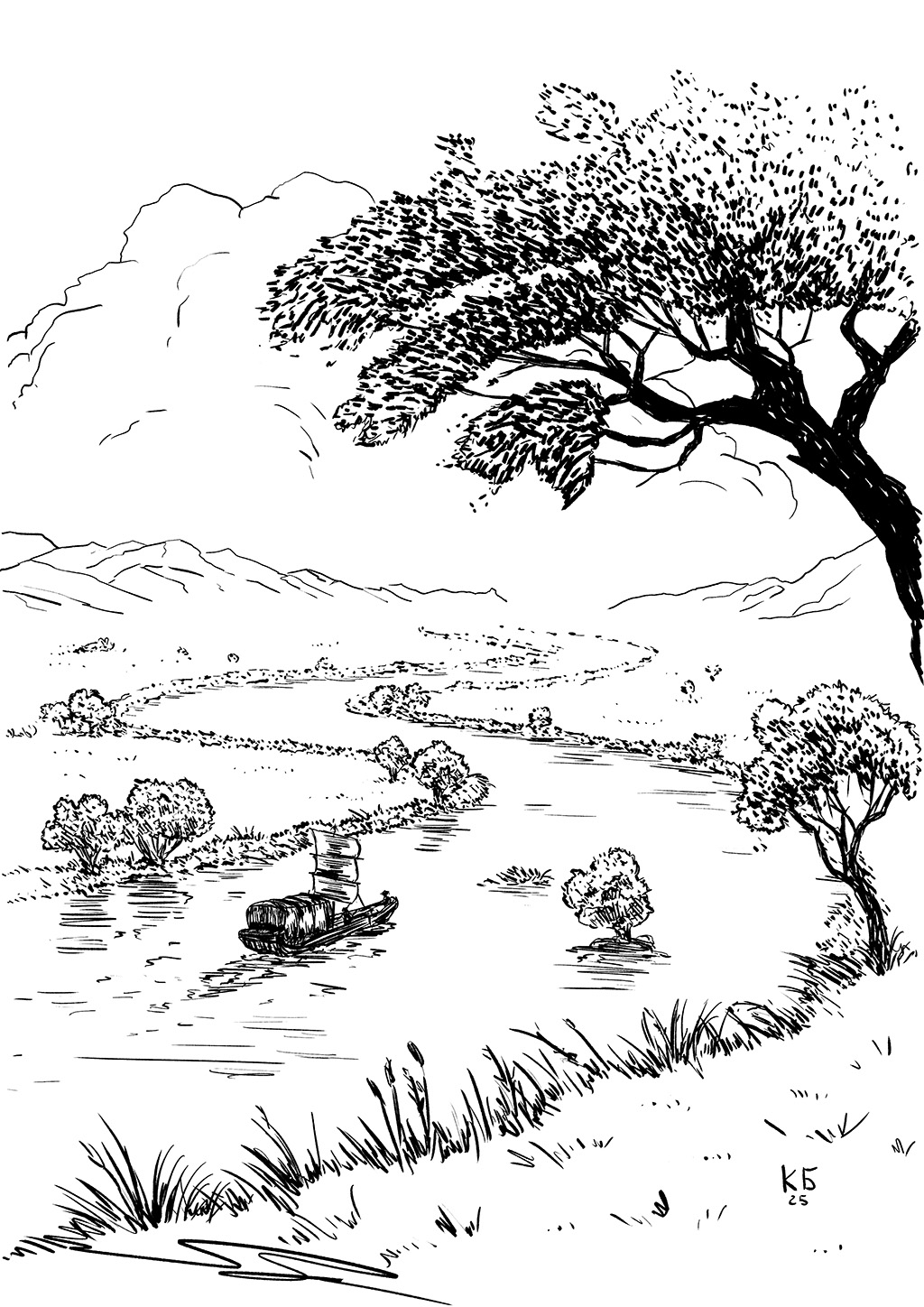 Пейзаж изменился лишь много дней спустя. Холмы подступили к реке, а вместо высокой травы повсюду теперь росли сухие кусты и невысокие деревца.