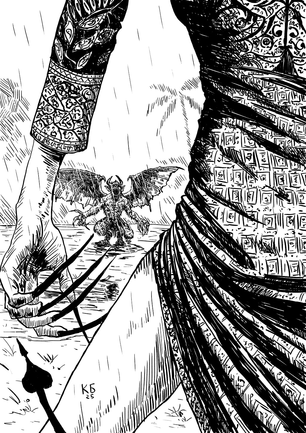 Сквозь шум битвы вновь прорвался гнусавый звук боевого рожка. Птицы рассеялись и завертелись, как щепки. Беспрестанно пятившаяся от врагов Ашаяти напоролась спиной на Кюимеи, которая рычала зверем и боролась с огромной птицей за посох. Ашаяти взмахнула мечом, чтоб срубить чудищу голову, и не заметила, как из гурьбы скелетов позади выбрался тайэ. Обросший смердящим мусором, он заревел и сшиб Ашаяти с ног рогатой головой. Девушка вскрикнула, а ее драгоценный меч упал в вязкую грязь. Ашаяти перекатилась на спину и выставила перед грудью длинный кинжал, но и его не удержала в руках после небрежного удара когтей. Доставать второй меч было некогда, поэтому Ашаяти полезла в рукав, где хранился один из ножей, но вспомнила, что тот давно застрял в крыльях костлявой птицы. Ашаяти мысленно выругалась.