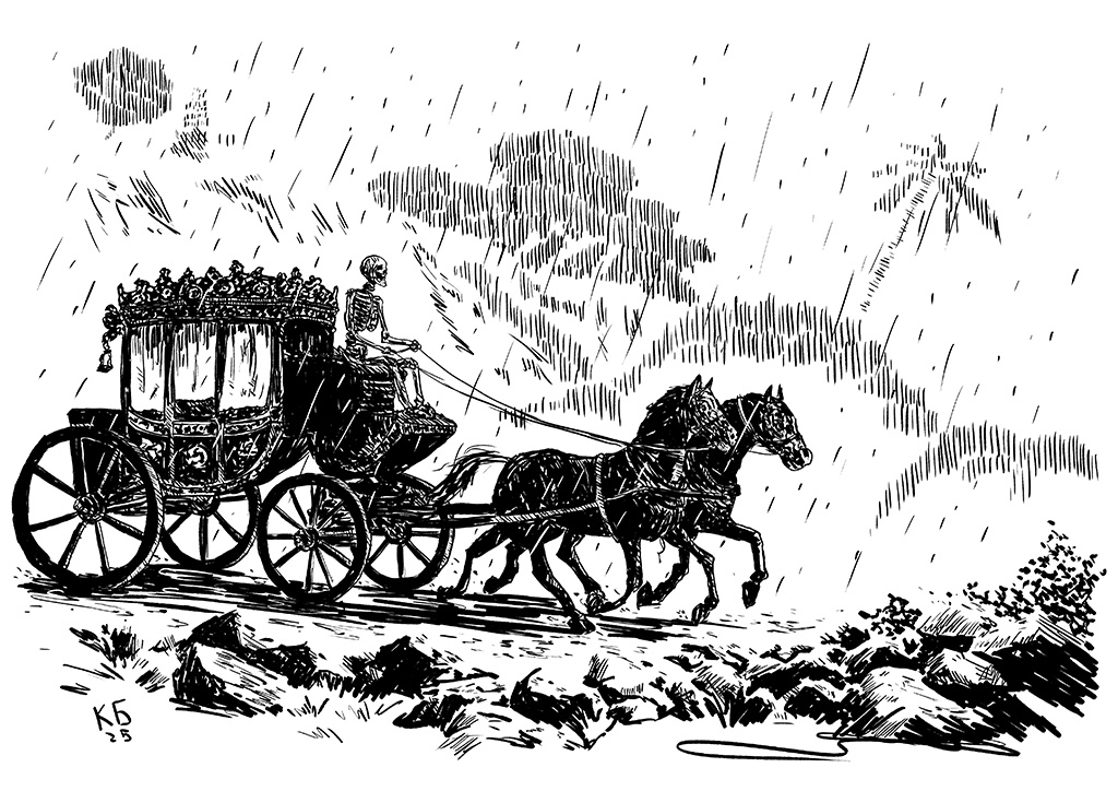 Карета тихонько катила по вьющейся у склона холма дороге. На козлах скучал скелет, развлечения ради тарахтел зубами и уныло поглядывал на буйные воды Аривади внизу. За деревьями еще видны были мачты шхуны – судно стояло на приколе, где его застало наводнение, и не могло теперь ни вернуться, ни двинуться дальше, в столицу, потому что ущелье впереди перекрыли дамбы. По черепу кучера шуршал легкий дождь, стреляли под колесами камни.
