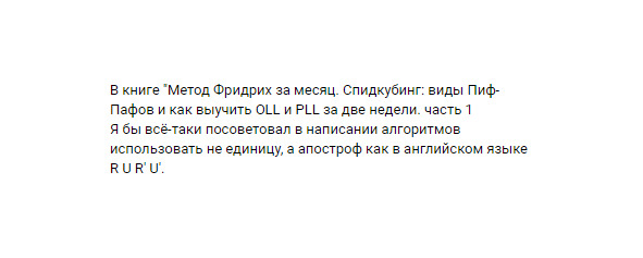 Для того, чтобы формулы были выучены на уровне мышечного запоминания (навыков и рефлексов) и их необходимо первоначально выучить. Вот именно в первоначальном заучивании у многих начинаются проблемы, которые многие решают по разному. Метод изложенный в данной книге позволит выучить формулы для первоначального заучивания и позволит применять формулы без «подглядывания», что в свою очередь, сделает ваши тренировки более эффективными, и сможете добиться выполнения алгоритмов за секунды и доли секунды. Выучив алгоритм с помощью запоминалки, Вы сможете натренировать его, используя любое свободное время (в транспорте, в очереди и т.п.).