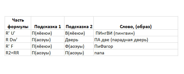 Для запоминания каких-либо частей формулы, иногда пиф-пафов, мной придумана таблица соответствия букв русского алфавита и направлений вращения.