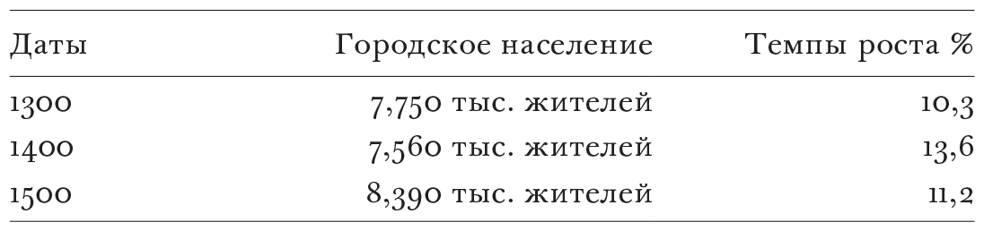 ГОРОДСКОЕ НАСЕЛЕНИЕ И ТЕМПЫ РОСТА ГОРОДОВ В ЕВРОПЕ, 1300–1500 ГОДЫ