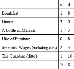 A note of charges for the trattoria, and for the hire of furniture, will be furnished to the passengers, on their applying for it.