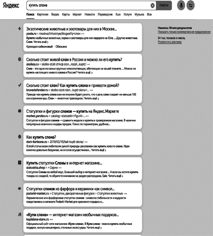 Рис. 10. Скриншот органической поисковой выдачи в «Яндексе».