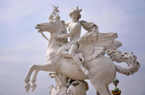 Вольтер был французским писателем, философом-просветителем 17 века. Парнас Горный массив в центральной части Греции. Безусловно А. С. Пушкин отдаёт должное великому таланту французского писателя, но нас интересует тот факт, что в своём произведении автор пишет о существе Пегас и мифических божествах Лирах. Пегас это крылатый конь Зевса, верховного бога всего пантеона богов Древней Греции, обитавших на горе Олимп. Согласно мифу о Медузе Горгоне, Пегас сын морского бога Посейдона и Медузы Горгоны, любимец муз. Музы в греческой мифологии – это девять древних божеств, дочери верховного божества Зевса и богини памяти титаниды Мнемосины. Изображали муз в виде молодых прекрасных девушек с божественными лицами, каждая в руке держала свой символ. Золотая лира – отличительная эмблема поэтов, певцов и военных музыкантов. Эта отсылка к допотопному миру.
